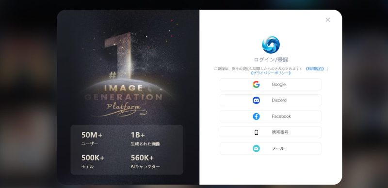Googleアカウント、Discordアカウント、メールアドレスなどで簡単に無料登録できます。お好きな方法でアカウントを作成してください。