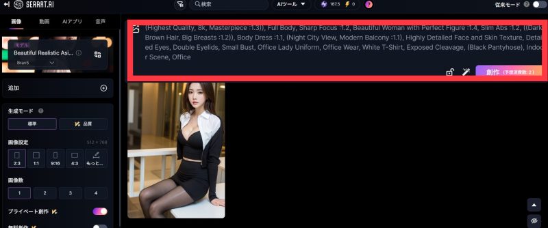 - 書き方: 作りたいAI美女の特徴(髪型、服装、表情、ポーズなど)や、背景、雰囲気などを具体的に言葉で記述します